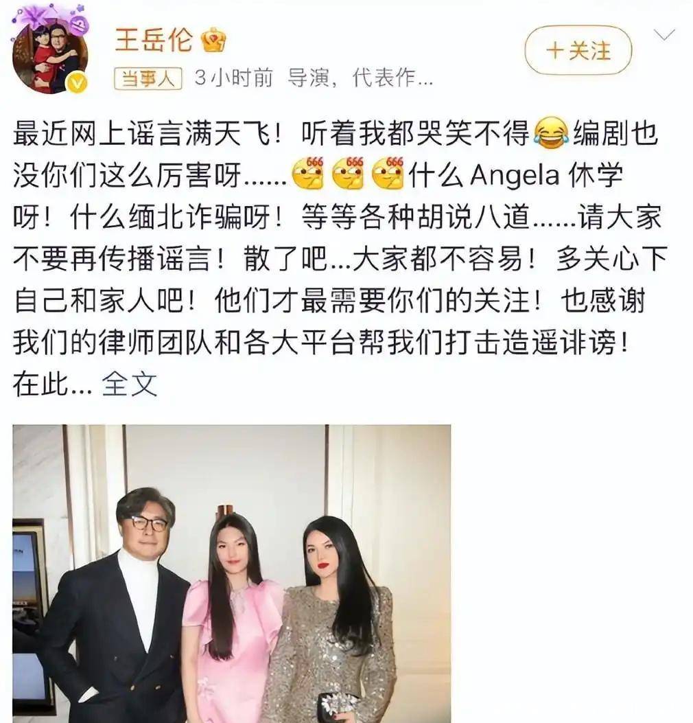 面对失控的舆论,李湘始终保持沉默,前夫王岳伦率先发声辟谣。他公开怒斥谣言离谱,直指缅北诈骗、女儿休学等说法纯属捏造,
