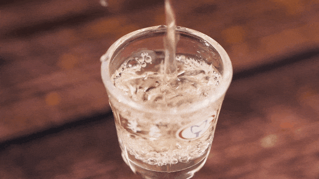 倒酒入杯, 清澈透明,犹如臻珀,没有杂质。