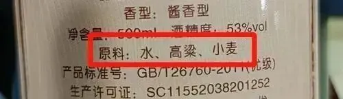 和茅子一样的配料:高粱、小麦、最后才是水 ,除此之外没有其他任何添加。