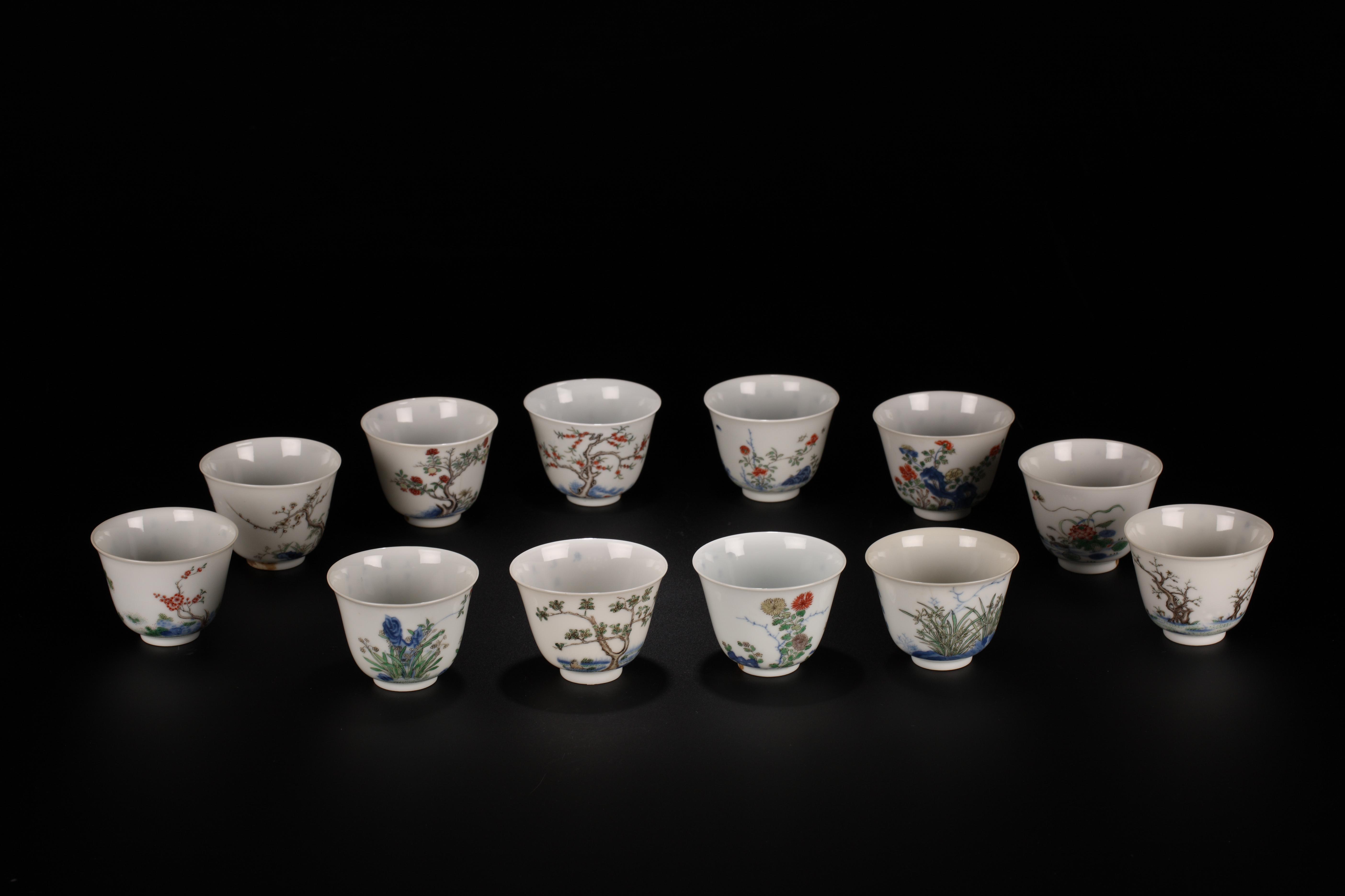 清康熙款五彩十二月花卉杯