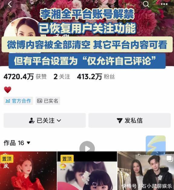 最近,有记者发现,李湘的账号在所有平台都被解封了,可以关注了。
