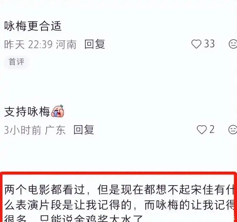 去年她凭借张桂梅一角摘得白玉兰视后,短短数月后,又以王铁梅角色拿下金鸡奖影后,成为同期女演员中的佼佼者。可金鸡奖颁奖后,质疑声瞬间席卷网络,核心争议便是她击败了咏梅,不少观众认为咏梅的表演更细腻传神,那段0.8秒眨眼的微表情更是封神,反观宋佳在《好东西》中的演绎,被指仅靠台词支撑,缺乏层次感。颁奖现场钟楚曦的落泪、咏梅的微妙表情,更是被网友反复解读,放大争议。